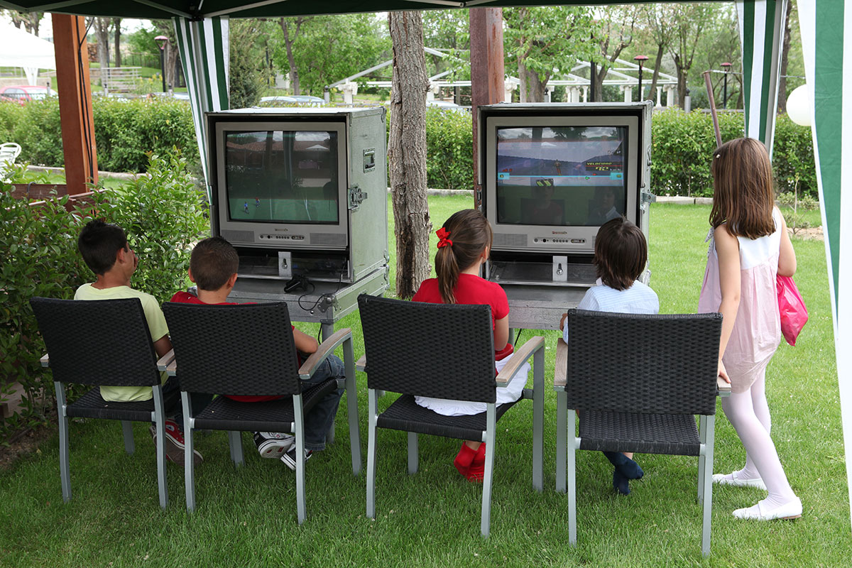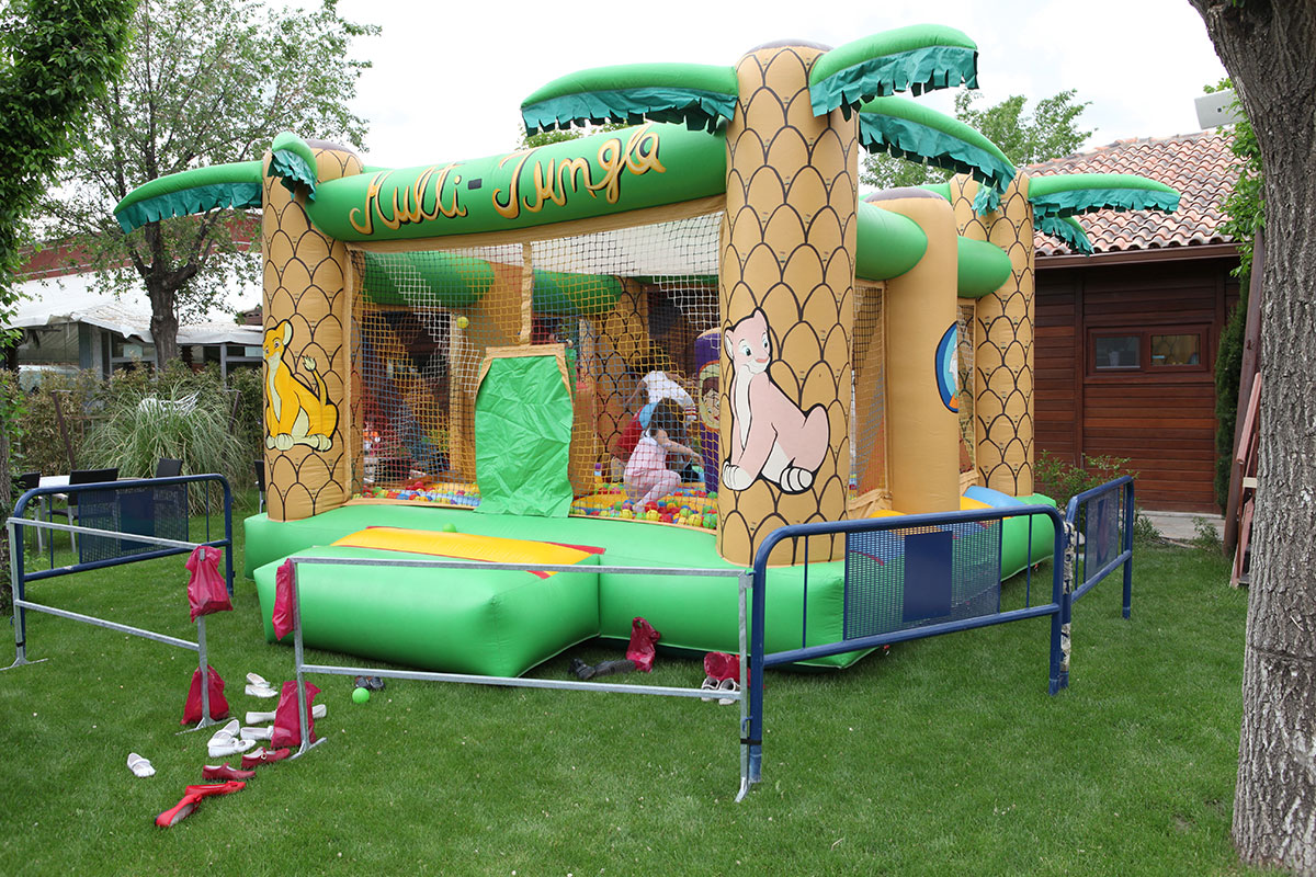 En un día de protagonismo para los más pequeños, Complejo La Cigüeña es la opción ideal para compartir un momento tan especial con sus amigos y familiares. Para que los peques disfruten, ponemos a su disposición nuestro Parque infantil con castillos hinchables, parque de bolas y camas elásticas. El mismo día se obsequiará al niño o niña con un regalo especial. Con buen tiempo, dentro de nuestro recinto ajardinado, servicio de discoteca gratuito a partir del mes de mayo. Todos los niños podrán utilizar nuestras instalaciones del Parque Infantil (castillos hinchables, camas elásticas, vídeo-juegos, etc.) de forma gratuita.